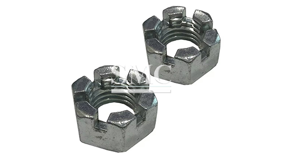 Compared with friction-based locking systems, this structure provides a more reliable anti-loosening solution, especially in rotating or load-bearing assemblies. Slotted nuts are widely used in automotive, construction machinery, heavy equipment, marine, and industrial applications.