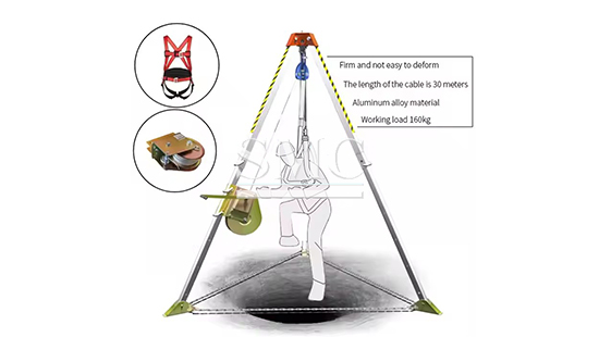 As a professional rescue equipment, the Rescue Tripod adopts a high-strength lightweight alloy made extendable support foot system, equipped with lifting and lowering self-locking devices and special stainless steel wire ropes. The safety factor of this equipment is greater than 10, the rated load is≤1.6KN, the steel cable length is up to 32 meters, and it is suitable for high-altitude, cliff and underground rescue scenarios.